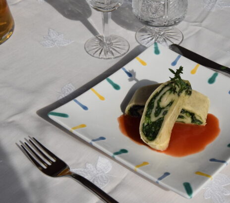Kürbiskernölpalatschinken mit Paradeisergemüse
